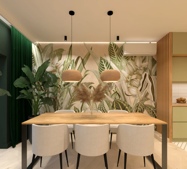 Optyczne powiększenie przestrzeni: Wzory roślinne mogą pomóc optycznie powiększyć pomieszczenie. Pionowe wzory mogą sprawić, że wyda się ono wyższe, natomiast wzory horyzontalne dodadzą wrażenie większej szerokości. Jest to szczególnie przydatne w niewielkich pomieszczeniach.